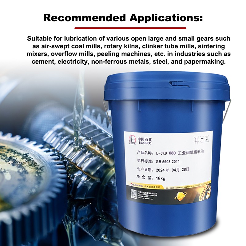 Sinopec L-CKD 680# industrial enclosed gear oil offers excellent load-carrying capacity, ensuring smooth operation of heavy-loaded gears, minimizing tooth scuffing, and effectively reducing operating noise.