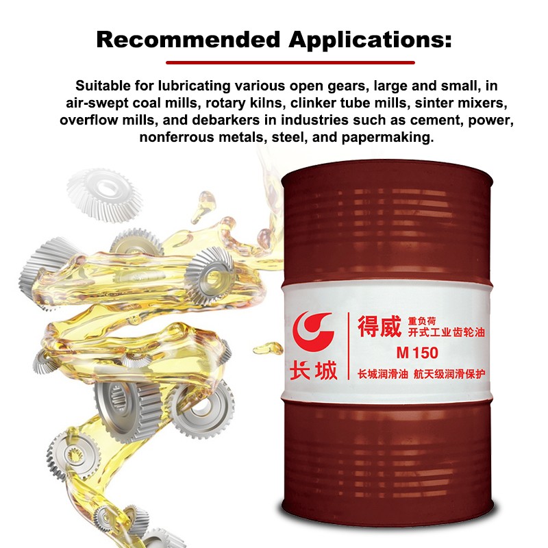 Sinopec L-CKM150# Heavy-Duty Open Industrial Gear Oil utilizes high-quality refined synthetic base oils, high-quality multifunctional additives, and solid lubricants. It is free of heavy metals and chloride ions, and requires no organic solvents, minimizing environmental and personnel hazards during operation. It meets current environmental protection requirements and is suitable for lubricating large open gears and wire ropes.