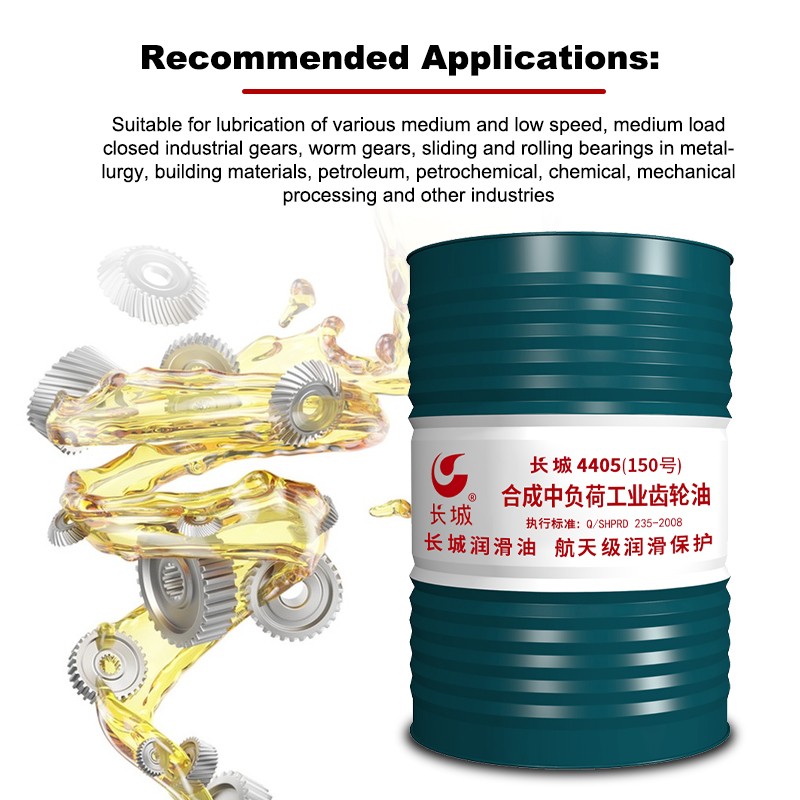 Sinopec 4405 Synthetic 150# Medium-Duty Industrial Gear Oil (PAG Type) is formulated with polyalkylene glycol synthetic base oil and refined with a variety of extreme pressure and anti-wear additives. This product is available in grades 46, 68, 100, 150, 220, 320, 460, and 680 based on kinematic viscosity at 40°C.