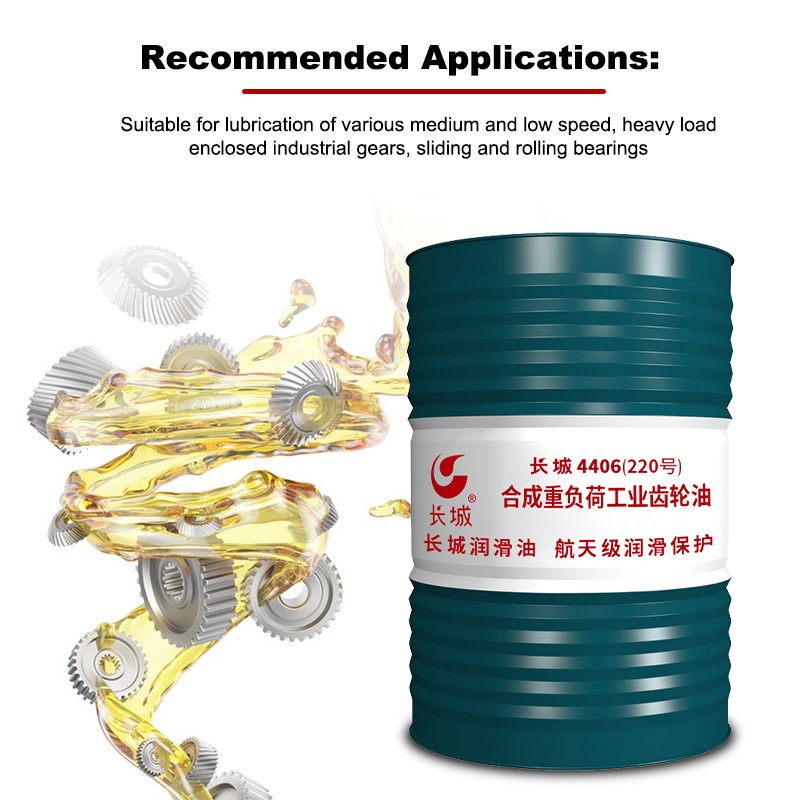 Sinopec 4406 Synthetic 220# Heavy-Duty Industrial Gear Oil (PAG Type) is formulated with polyalkylene glycol as a base oil and refined with a variety of additives, including extreme pressure and anti-wear additives. This product is available in grades 100, 150, 220, 320, 460, 680, and 1000, based on kinematic viscosity at 40°C.