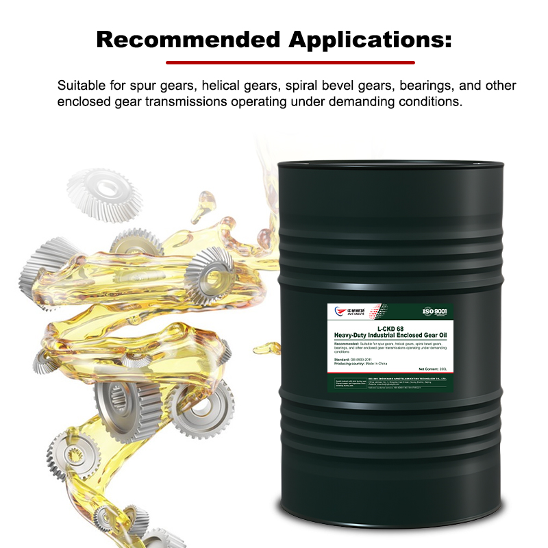 AVIC Hangte L-CKD industrial enclosed gear oil 68# is blended with high-viscosity index base oils and high-quality multifunctional additives. It forms an extreme pressure film on metal surfaces under boundary lubrication conditions, preventing seizure and reducing wear. It is suitable for use in heavy-duty gear transmission systems operating at higher temperatures. This product is available in grades 68, 100, 150, 220, 320, 460, and 680 according to kinematic viscosity at 40°C.