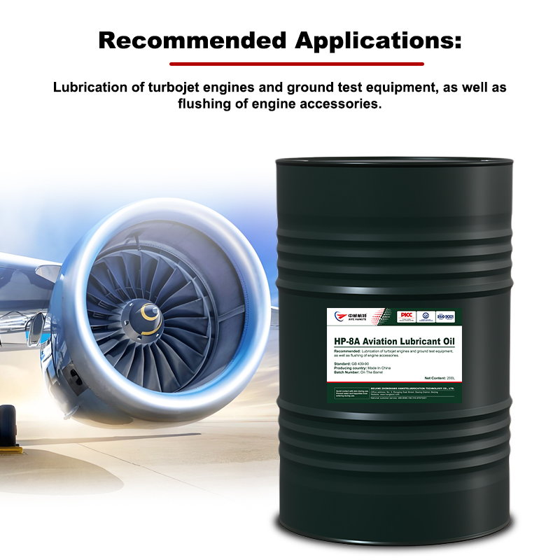 AVIC Hangte Aviation Special HP-8A Aviation Lubricant is blended with refined base oils and selected additives. It is used in aircraft jet lubrication systems and exhibits excellent viscosity-temperature performance and low-temperature startability. It is suitable for turbojet engines operating in cold regions, with an operating temperature range of -45°C to 130°C.