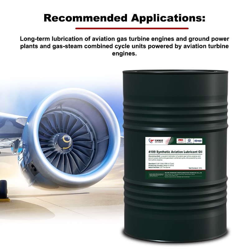 AVIC Hangte 4109 Aviation Lubricant is composed primarily of synthetic base oils and antioxidants, corrosion inhibitors, and anti-wear agents. It is a low-viscosity engine lubricant that complies with the US Military Standard MIL-L-7808H and has an operating temperature range of -50°C to 175°C, with a short-term operating temperature range of up to 200°C.