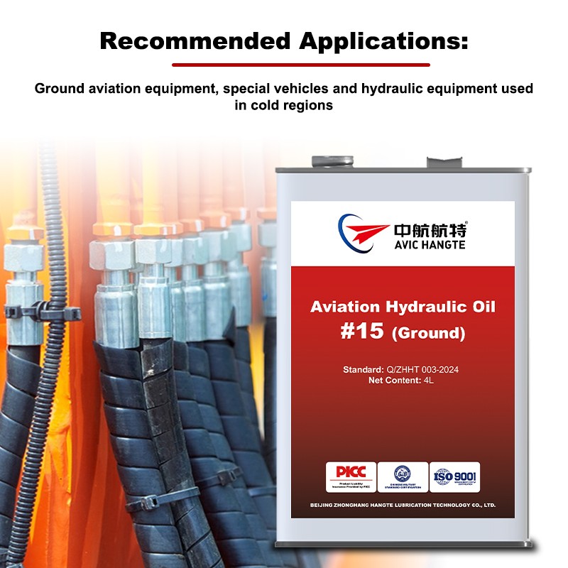 AVIC Hangte No. 15 Aviation Hydraulic Fluid is blended with mineral base oils and additives. It offers excellent viscosity-temperature stability, oxidation resistance, and hydraulic transfer properties, making it suitable for use in high-performance hydraulic systems operating in low-temperature environments.