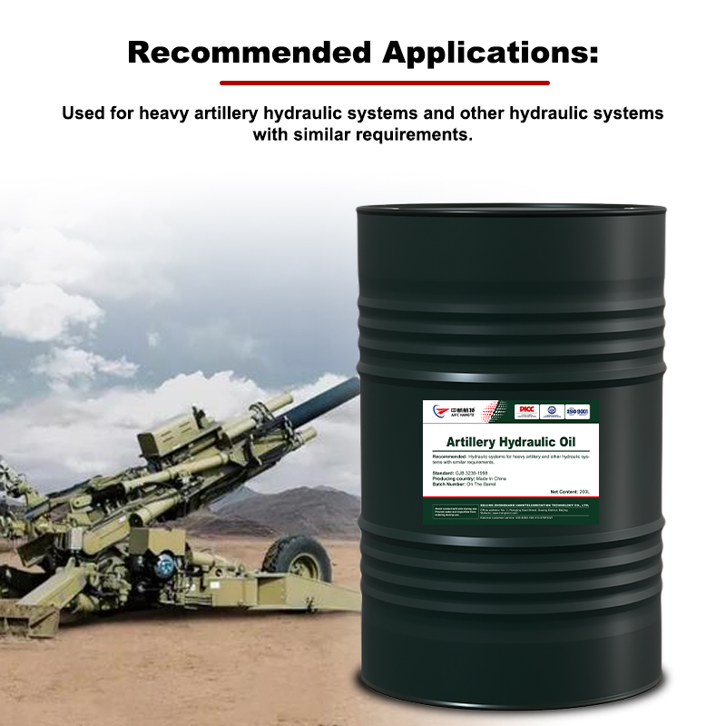 AVIC Hangte Gun Hydraulic Fluid is formulated using a synthetic base oil with a small amount of viscosity improver, rust inhibitor, and antioxidant. It has an operating temperature range of -45°C to +135°C, suitable for use in most areas of China and year-round.
