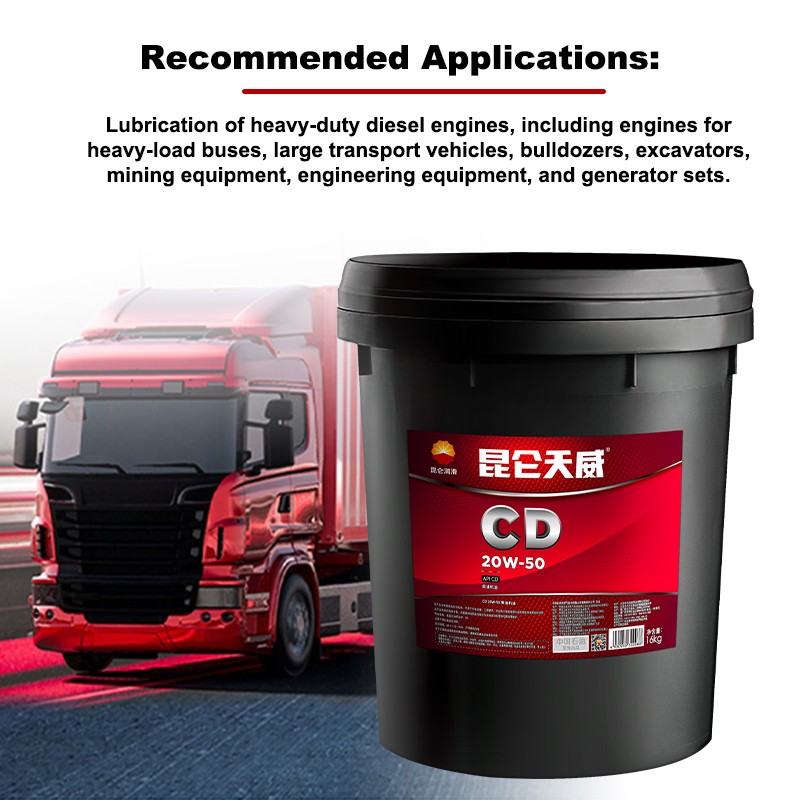 Scope of Application | This product is used for lubricating heavy-duty diesel engines, including engines for heavy-duty buses, large transport vehicles, bulldozers, excavators, mining equipment, engineering equipment, and generator sets. | ||