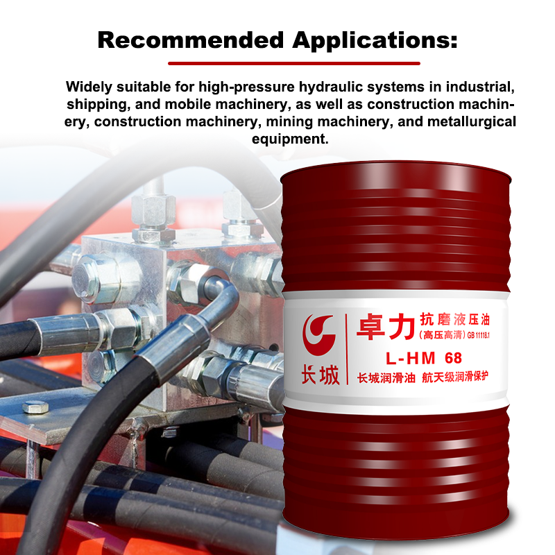 Great Wall Zhuoli L-HM 68 anti-wear hydraulic oil (High Pressure, High Definition) is formulated with deeply refined, high-quality base oils and additives.