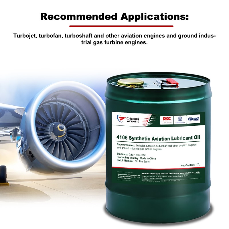 AVIC Hangte 4106 Aviation Lubricant is formulated with synthetic base oil and a variety of additives, including antioxidants, anti-corrosion agents, and anti-wear agents. It has an applicable temperature range of -40°C to 200°C.