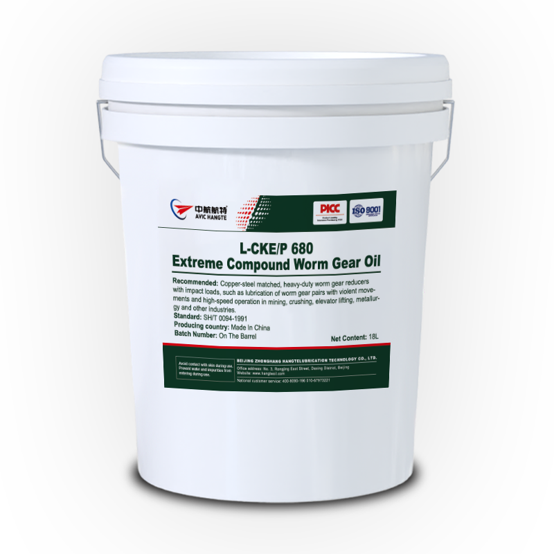 AVIC Hangte L-CKE/P Extreme Pressure Worm Gear Oil is carefully blended with premium high-viscosity index base oil and a variety of high-quality additives. It is primarily used for the lubrication of cylindrical copper-steel worm gear pairs subject to heavy loads and vibration and impact, including gears and spur gears, as well as other mechanical equipment. This product is available in grades 220, 320, 460, 680, and 1000 based on kinematic viscosity at 40°C.