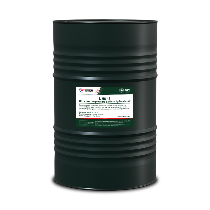 AVIC Hangte HS ultra- low temperature ashless hydraulic oil is made of deeply refined high viscosity index hydrogenated base oil and ashless formula. It is suitable for the lubrication of precision hydraulic systems containing copper and silver parts in ultra-low temperature environments . This product is divided into grades such as 10, 15, 22, 32, and 46 according to the kinematic viscosity at 40°C.